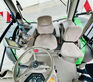 First registration: August 16, 2022 AutoPower continuously variable transmission 50 km/h, PREMIUM Edition, Autotrac preparation, ComfortView cab with CommandPRO and cab suspension, Processor 4600, Premium Activation 3.0 for CommandCenter™ 4600 Gen 4, premium seat, electrically adjustable and manually extendable telescopic mirrors with wide angle, panoramic windshield with B-pillar on the left, premium Precision Farming Package, electric multifunction lever, cooler, bottle and cup holders, display front drive – swiveling, lighting package − premium, rotating beacon, repeater headlights at mid-height – H4 (left and right) three-phase generator 14 V/250 A, 3-pin socket for front power lift, Fender control for 3rd electric auxiliary control valve (SCV), auxiliary oil tank, position control and remote control for front power lift, independent front SCV for front power lift with pressureless return, iTEC headland management system, Tractor Implement Automation (TIA) activation for tractor, ISOBUSdocumentation (TC-Geo activation), 2 wheel chocks, license plate holder – front, integrated service center, overhang warning signs, premium radio, four-wheel drive front axle – TLS Plus with brakes, stabilizer struts – automatic, rear PTO – 540/540E/1000 rpm, hydraulic pump – 155 l/min, 4 electronic auxiliary control units (SCV) – premiumTranslated with DeepL.com (free version), Operating hours - 3642h