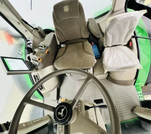First registration: December 18, 2018 - Transmission e23 - 50 km/h - 10-inch CommandCenter display with video function - 4600 processor - Command View III Premium cab with ActiveSeat - Premium radio - 321 l/min hydraulic pump - 5 dw. Super Deluxe control units - Rear PTO 1000/ 1000E - Rear power lift with 9,000 kg lifting capacity, Cat. IVN/III - Height-adjustable towing bracket with K 80 ball - ILS all-wheel drive front axle with independent suspension & disc brakes - Premium lighting package - Extra-wide front fenders, width 710 mm - Extra-long rear fenders, width 2.75 m - Electric telescopic exterior mirrors - Refrigerator, 6.4 liters - Power Beyond connections (load sensing) - Operation via electric multifunction joystick - Lighting package for loader and headlights - Pneumatic trailer brake, 2 lines - Holder for wheel chocks - Battery disconnect switch - 20 front weights - 1 pair of HR weights for cast rims, 625 kg each inside - 1 pair of rear wheel weights outside - Premium connectivity package, Operating hours - 2125h