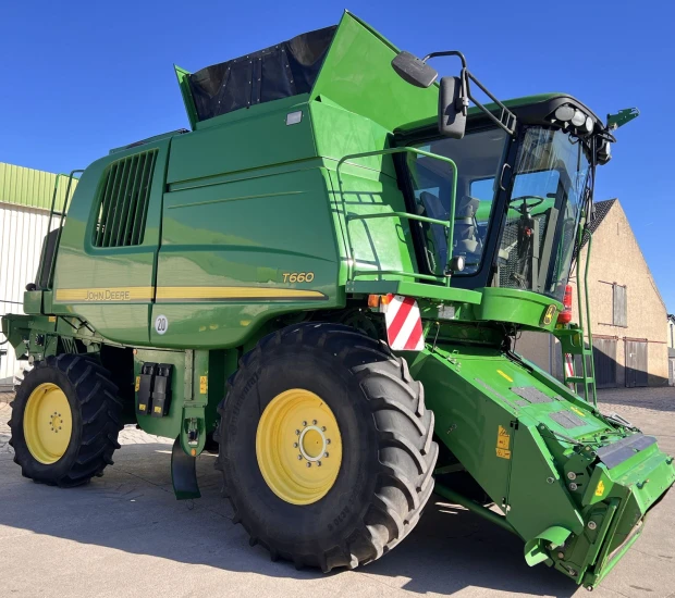 CommandCenter cab, 11,000-liter grain tank, premium 8-row chopper, laser sensor for overload indication, document box, electric sieve adjustment, Autotrac preparation with HarvestMonitor, yield and moisture measurement, dual chopper drive, reduction gear