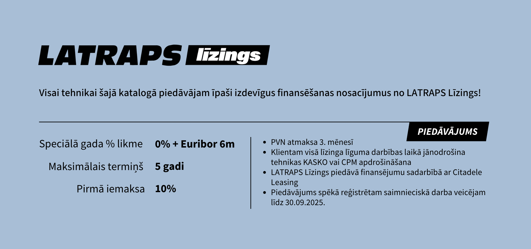 Visu katalogā pieejamo tehniku var iegādāties uzreiz – par akcijas cenām un ar izdevīgiem finansēšanas nosacījumiem no LATRAPS Līzings!!